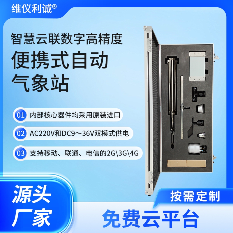 LQQ-DB1型智慧云联数字高精度便携式自动气象站是按照国际气象组织(WMO)气象观测标准设计、生产的小型自动气象站。气象传感器指标满足中华人民共和国气象行业标准(标准号:QX/T1-2000)。该款气象站观测支架采用目前国内第三代气垫减震收缩技术,有效避免支架在收缩时损伤架体,延长支架使用寿命达10年以上,支架完全收缩后整体高度只有1米配合单肩旅行袋可以轻松带走,便于携带,使用方便,做工精良,测量精度高。该系统采用一体化结构设计,是一款具有性价比的小型自动气象站。